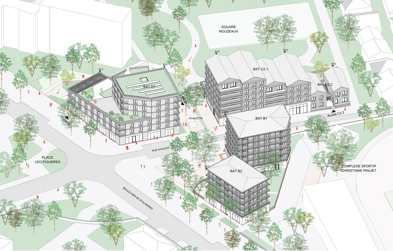 programme : 68 logements (44 accession libre + 6 BRS + 18 locatif social) + commerces