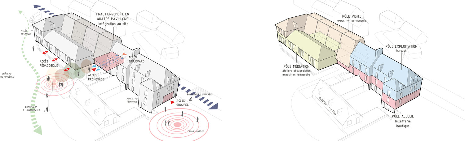 programme : C.I.A.P. centre d’interprétation de l’architecture et du patrimoine : pôle accueil – services + pôle visite + pôle médiation – animation + pôle exploitation + scénographie