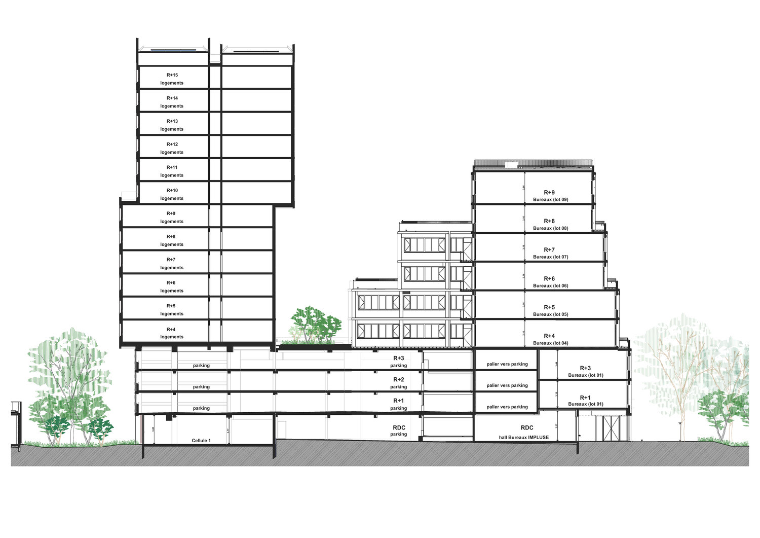 programme : 188 logements + bureaux + cellules activités et artisanat + parking