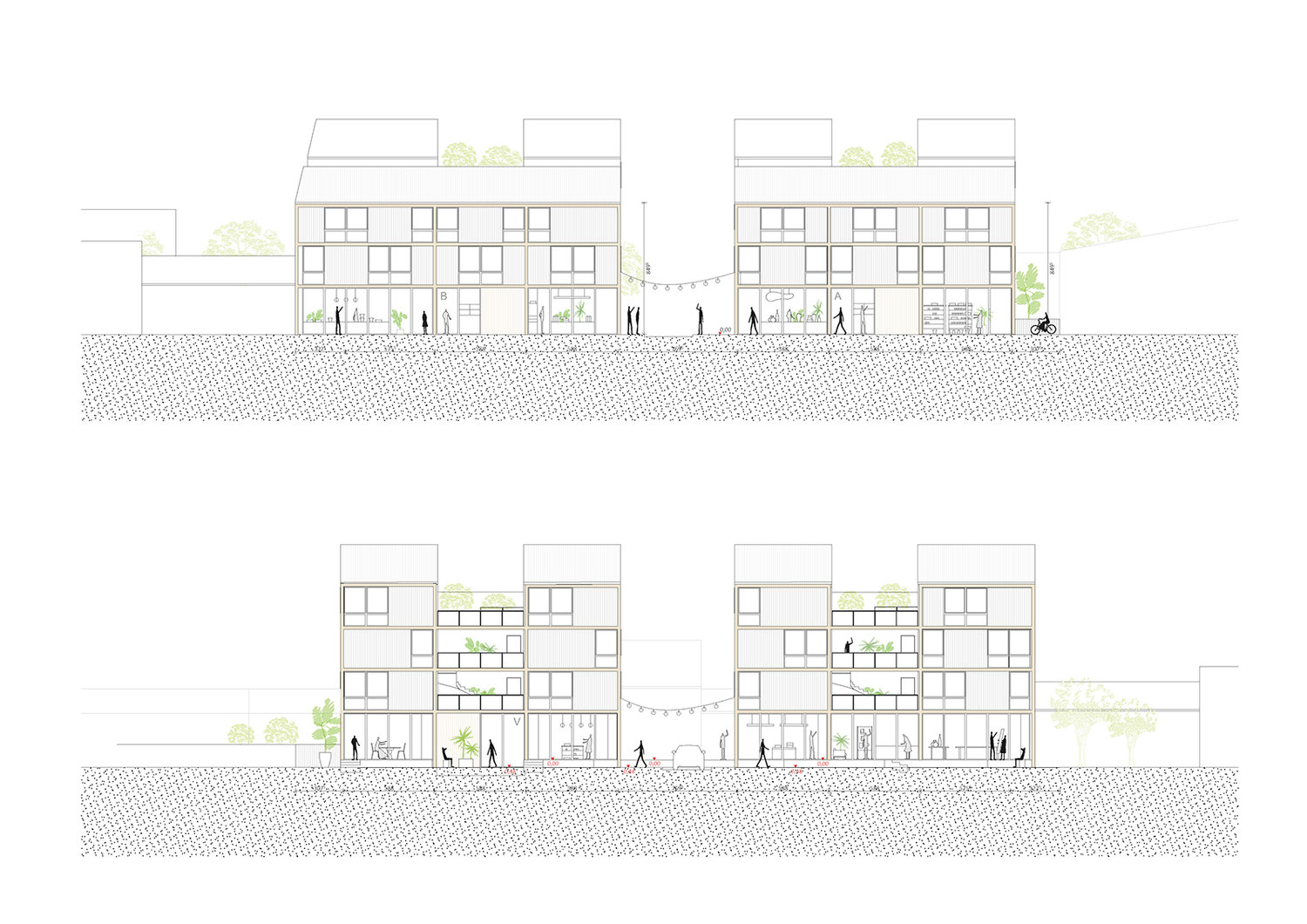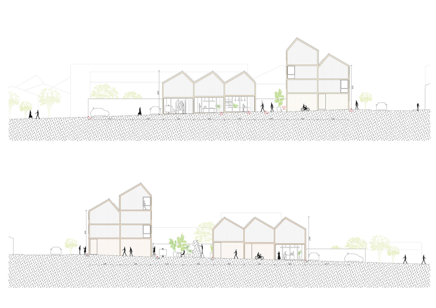 programme : ateliers/vitrines d’artisans + logements + salle de convivialité + espaces de stockage commun