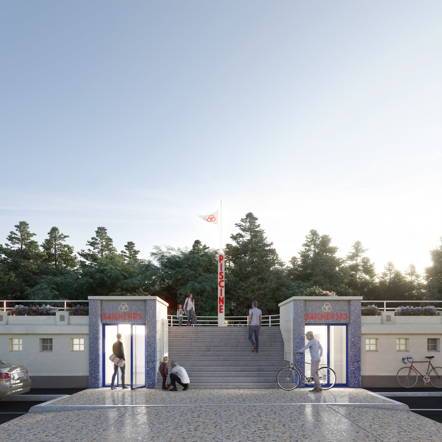 surface : 500 m² bassin + 400 m² (locaux techniques / vestiaires / personnel) + 1000 m² plages