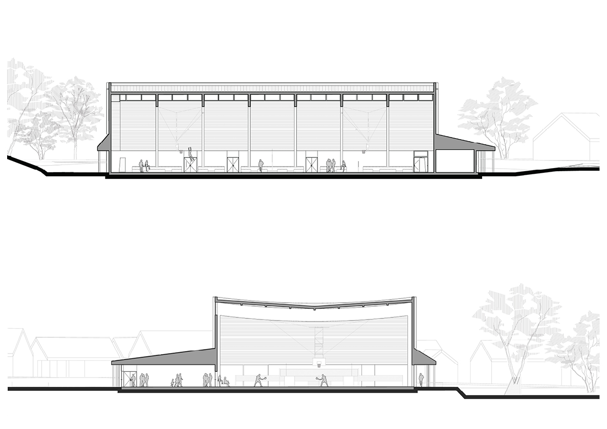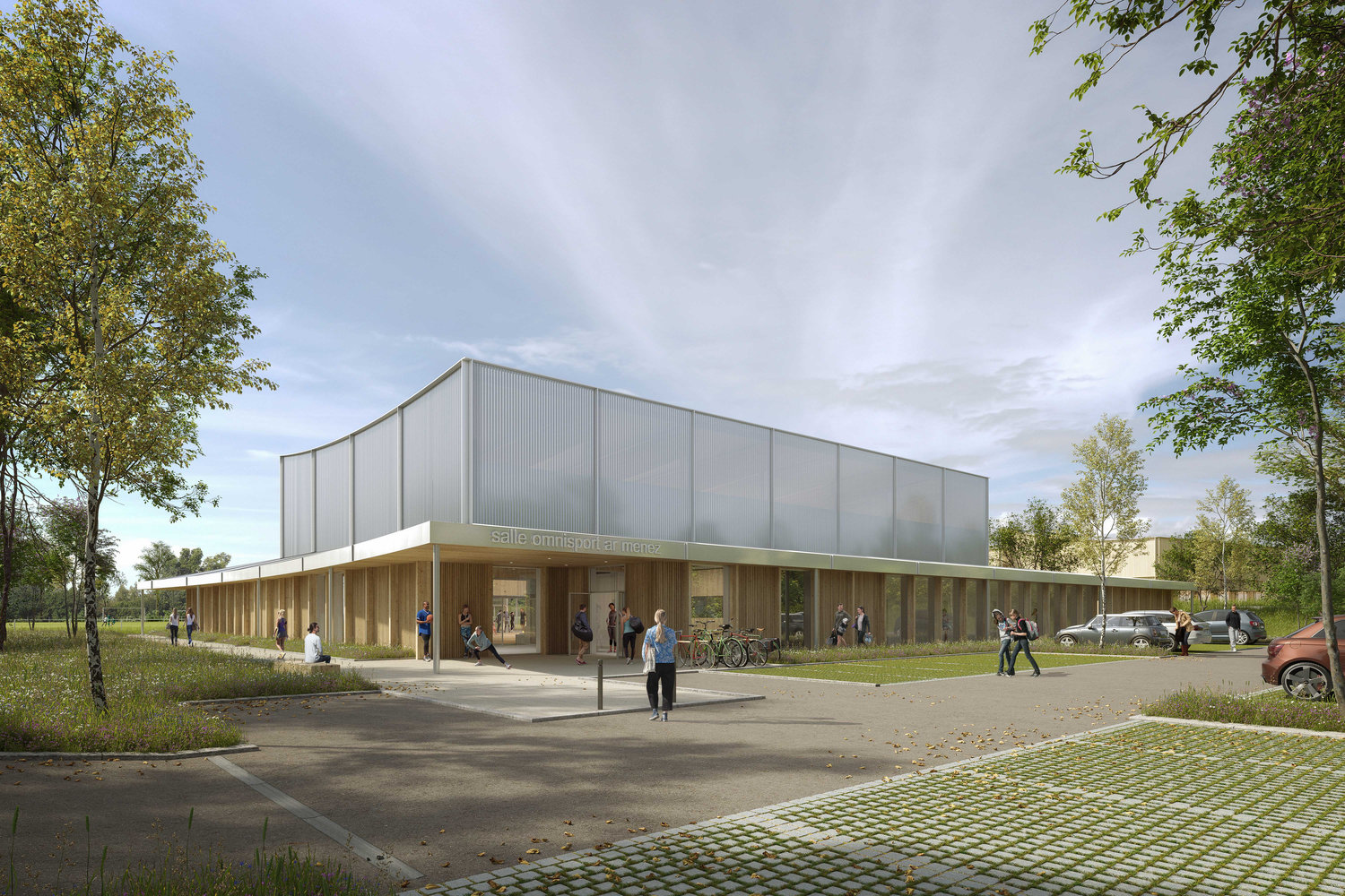 Salle omnisport + tribune 100 places + vestiaires + salle de réunion + restauration + locaux services